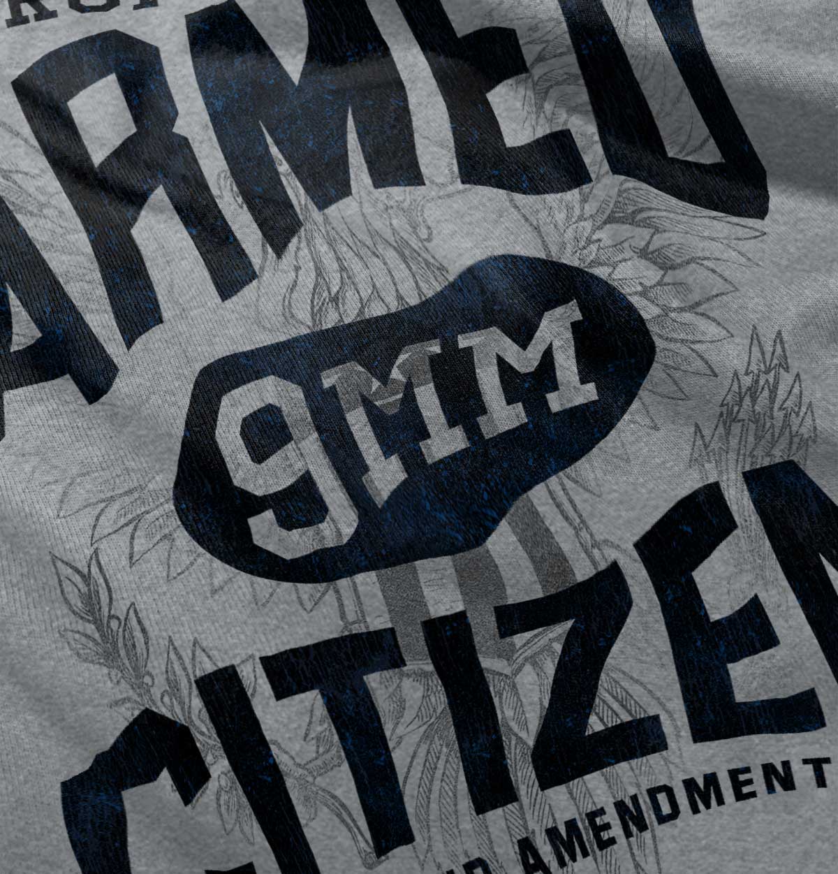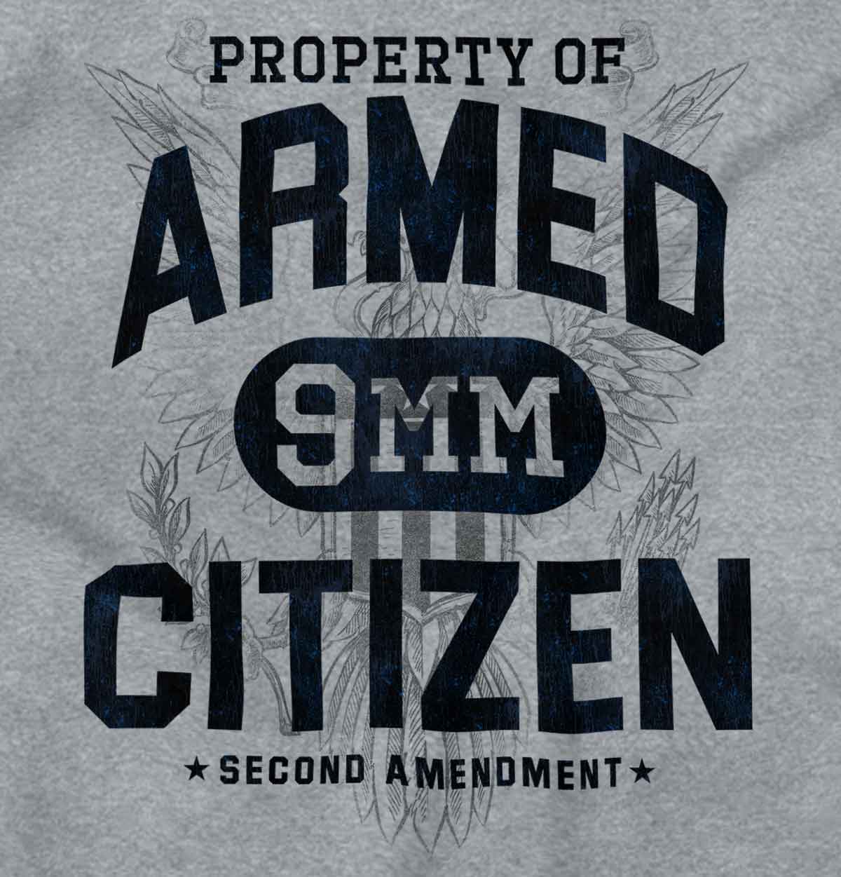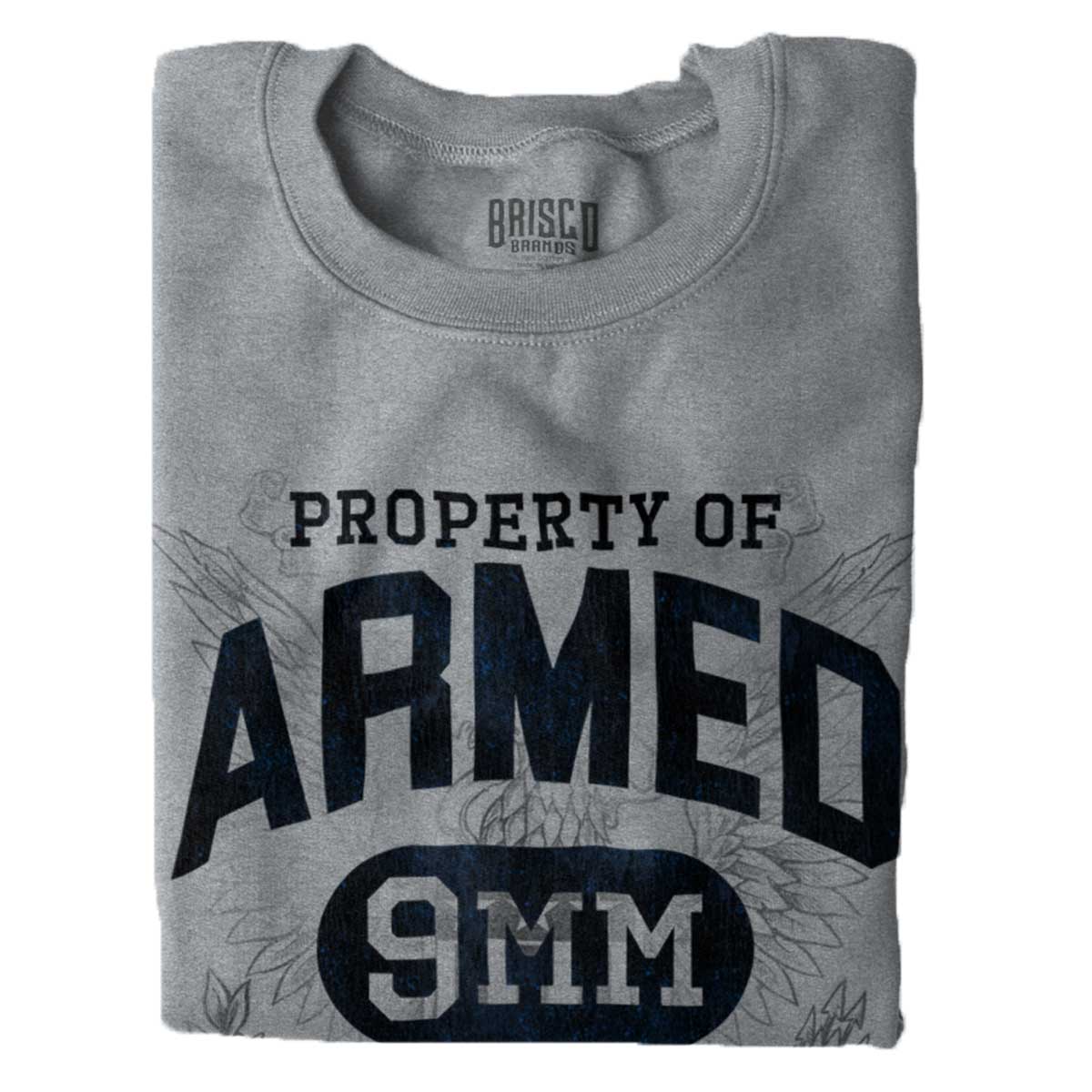 This Crewneck Sweatshirt is officially the property of an Armed Citizen. We couldn’t get any legal documentation to make it official, but we tried to make it look as cool as we could. Designs like these can tend to get a bit pretentious, but this one isn’t because it’s about gun ownership. There really isn’t anything less pretentious than a gun, especially when you’re staring down the barrel of it. We threw “9mm” on there because these types of designs look more “official” with numbers and establishment dates. We should probably stop sharing industry secrets.