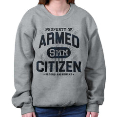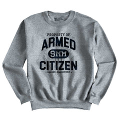 When you buy this very awesome Crewneck Sweatshirt, it will officially be designated as the property of an Armed American citizen. That means that seizure of this property by law enforcement or government agencies without warrant is unlawful and unconstitutional. We made that up, but it sounds like it would be true. Everyone is going to want to get their hands on your with this design.