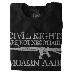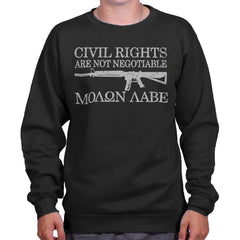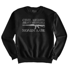 Many things are negotiable. The salary for your new job? Negotiable. The restaurant you want to catch dinner in the evening? Negotiable. Civil Rights? Not-so-much. The power of choice is a powerful thing, but some things just shouldn’t be changed. Sometimes people try and mess with the things we uphold, and that’s where firearms come in! We made a sweet Crewneck Sweatshirt that clearly outlines what your terms are, and if anyone tries to screw with theses God-given, unalienable rights, then you have the right to defend them with force if necessary. ‘Merica.