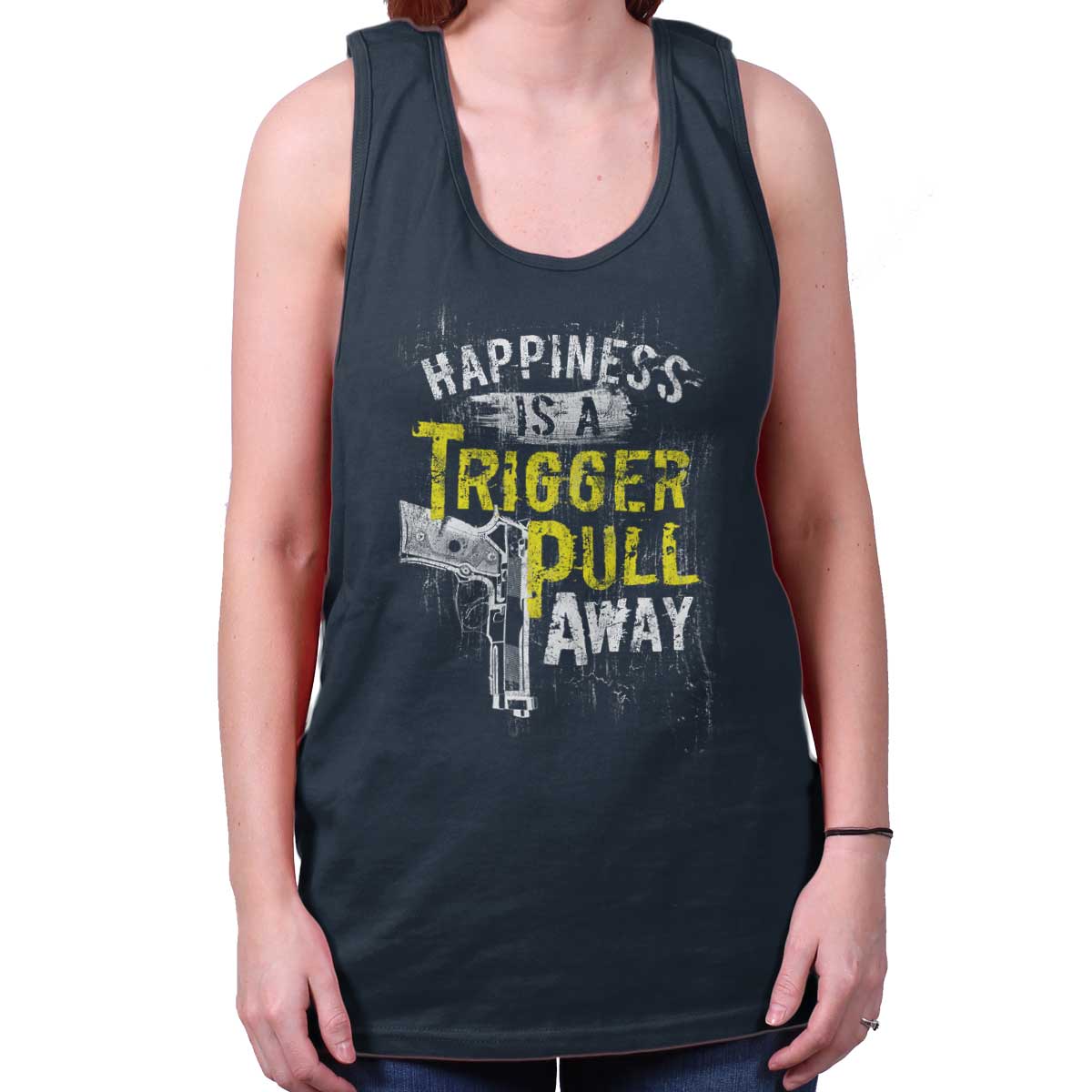 Happy (adjective) – feeling or showing pleasure or contentment. Depending upon the person, being happy can mean many different things. The emotion is not exclusive to one aspect of life. Happiness can be found in your job, in your family, or in the small things like the way a loaded .45 feels in your hand! Here at Tactical Tees™, we support all forms of happiness, as long as they uphold the supreme law of our great nation: the United States Constitution! This tank top is for all who find happiness in exercising their Second Amendment rights!